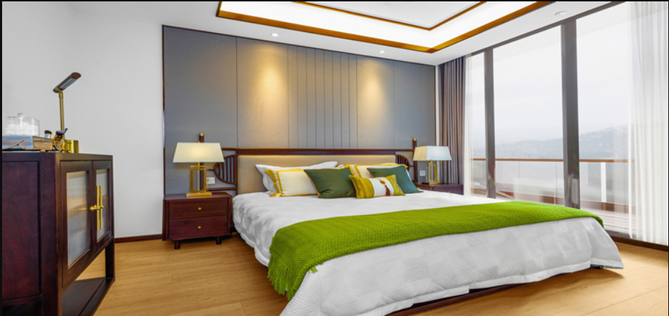 比如,全包圓樣板間紫煙香閣、海棠依舊采用的家具為進(jìn)口金絲檀木、白蠟?zāi)静馁|(zhì),設(shè)計(jì)上不僅飽含中式傳統(tǒng)氣質(zhì)且簡(jiǎn)約實(shí)用,還能讓整個(gè)空間凸顯出穩(wěn)重、自然、寧?kù)o的氣息。同時(shí)在整體布局上,家具和氛圍也要結(jié)合好,比如選用有厚重質(zhì)地和素雅圖案的棉織布窗簾與之搭配,顯示出長(zhǎng)者的睿智與和善等。