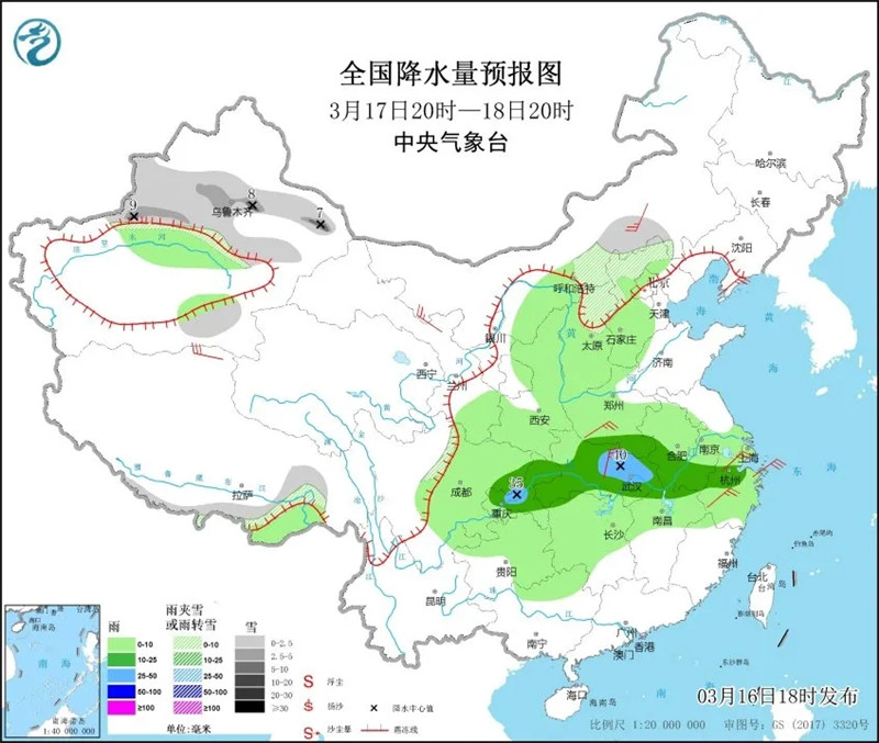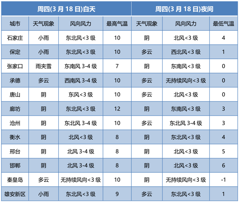 17日夜間到18日,張家口北部、承德北部陰有雨夾雪或小雪,唐山、秦皇島、滄州東部、衡水東部多云轉(zhuǎn)陰,其他地區(qū)多云轉(zhuǎn)陰有小雨。
