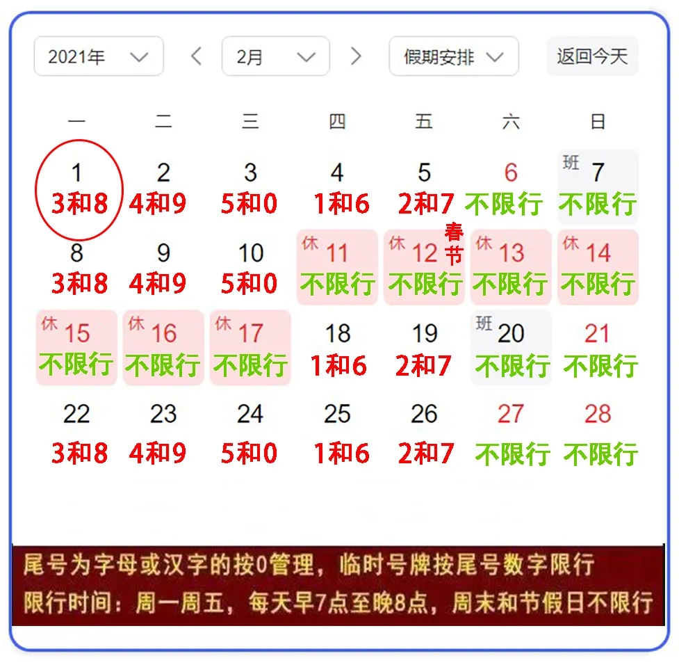 2月20日 周六上班不限行