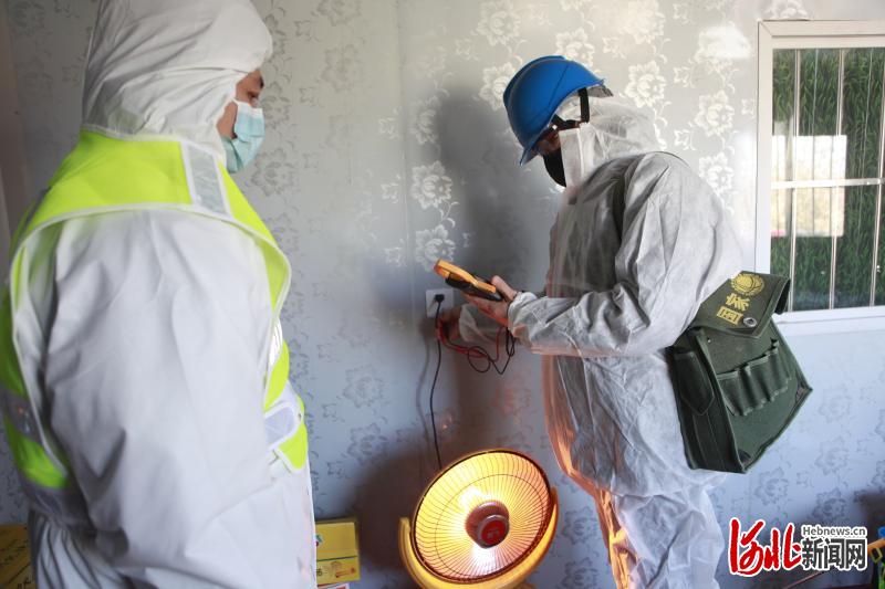 1月7日,國網(wǎng)南宮市供電公司防疫保電共產(chǎn)黨員突擊隊隊員為執(zhí)勤點義務(wù)檢查用電情況。