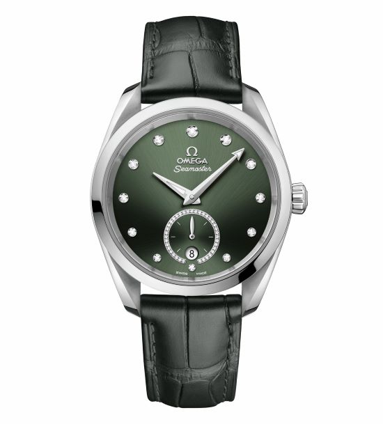 當(dāng)然,對(duì)于許多年輕人來說,海馬系列更加運(yùn)動(dòng)、更富現(xiàn)代感。這款海馬系列 AQUA TERRA  150米38毫米至臻天文臺(tái)小秒針腕表  顯得與傳統(tǒng)的海馬有很大的區(qū)別,更加簡(jiǎn)潔干練。38毫米直徑的不銹鋼表殼采用對(duì)稱設(shè)計(jì),表背采用波紋邊緣設(shè)計(jì)。醒目的深綠色表盤呈現(xiàn)出太陽射線打磨效果,6點(diǎn)位設(shè)有日歷窗,小秒盤的圓環(huán)經(jīng)過鍍銠處理,并鑲嵌鉆石。鍍銠指針覆有白色  Super-LumiNova  夜光涂層,依次遞增的鉆石小時(shí)刻度鑲嵌于鍍銠托槽內(nèi)。該表搭配深綠色皮表帶,與盤面搭配和諧。內(nèi)部搭載的歐米茄8802同軸至臻天文臺(tái)機(jī)芯  ,通過由瑞士聯(lián)邦計(jì)量研究院(METAS)核準(zhǔn)的至臻天文臺(tái)認(rèn)證,其精準(zhǔn)度、防磁性和整體性能均達(dá)到行業(yè)的更高標(biāo)準(zhǔn),特別地實(shí)用。