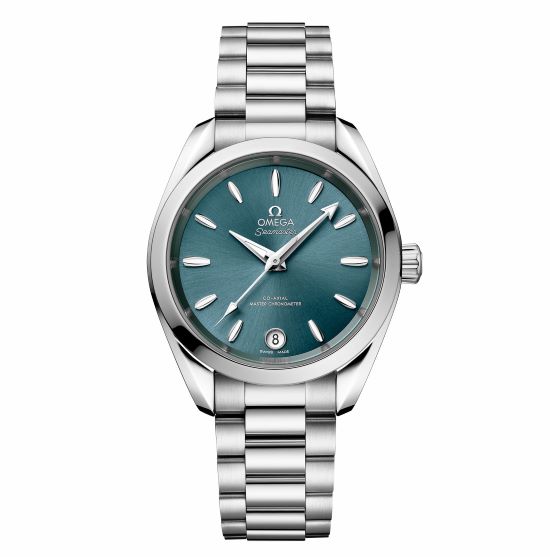 其實(shí),選擇這款綠色盤面表的一大好處,就是很方便搭配各種不同的女表款式。比如這只海馬系列 AQUA TERRA  150米34毫米至臻天文臺(tái)表  ,小一點(diǎn)的尺寸更加適合女性的需求。同樣向歐米茄輝煌的海洋傳奇致敬之作,設(shè)計(jì)風(fēng)格一致之外,又有小細(xì)節(jié)的變化:其湖綠色表盤色澤雅致而獨(dú)特,是由黃銅制成,經(jīng)過漆面處理,由中央向四周呈現(xiàn)出太陽射線的打磨效果。6點(diǎn)位設(shè)有日歷窗,指針、小時(shí)刻度和歐米茄品牌標(biāo)識(shí)均以拋光白色18K金制成,細(xì)看之下嫵媚性感動(dòng)人。