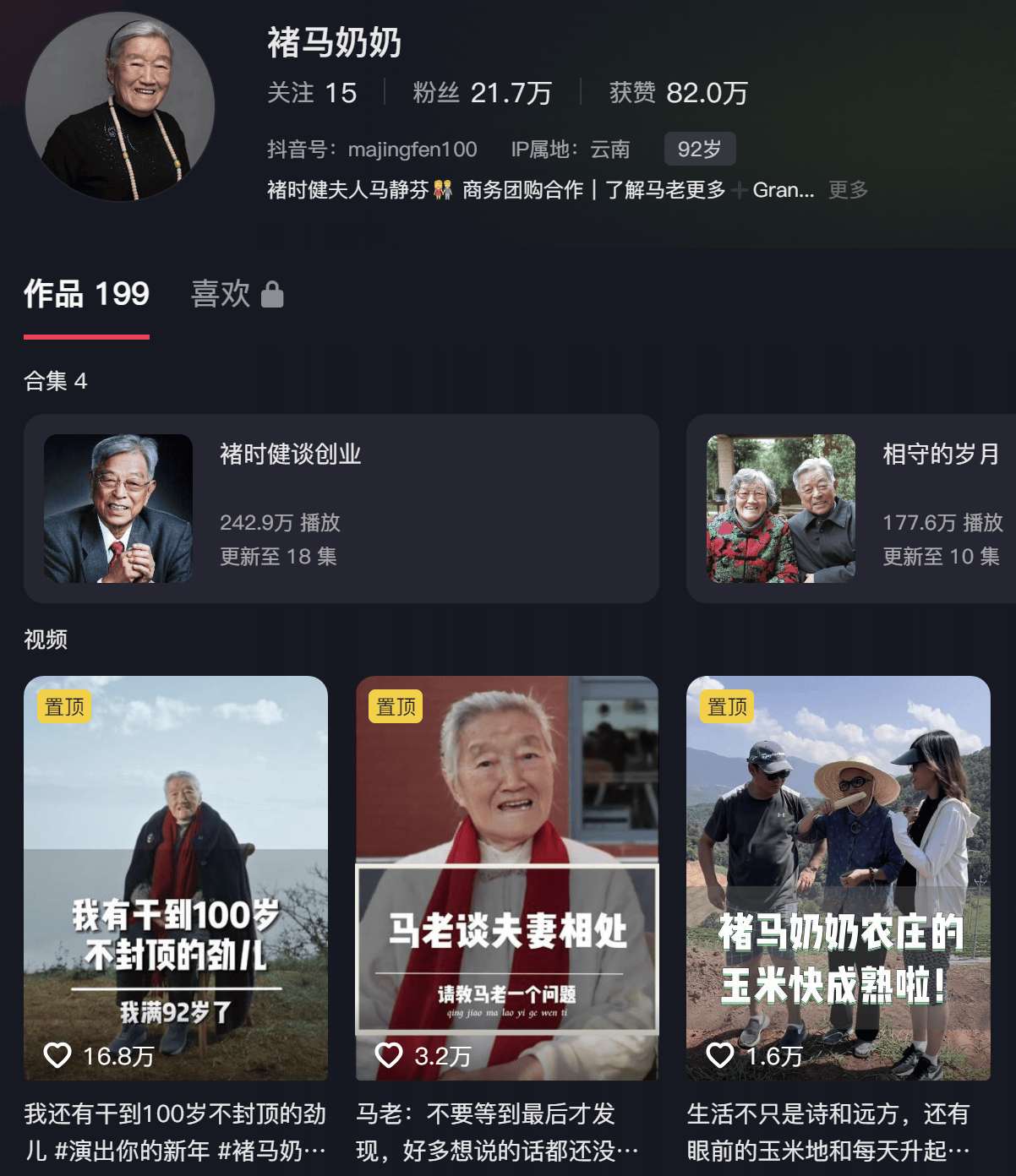 91歲本已是功成名就的安享天年的年紀(jì), 褚橙莊園&褚馬奶奶農(nóng)莊創(chuàng)始人馬靜芬,把耕耘了20多年的褚橙莊園,通過抖音店鋪和短視頻的結(jié)合推廣,和自身的影響力,讓褚橙上了一個(gè)新臺(tái)階。