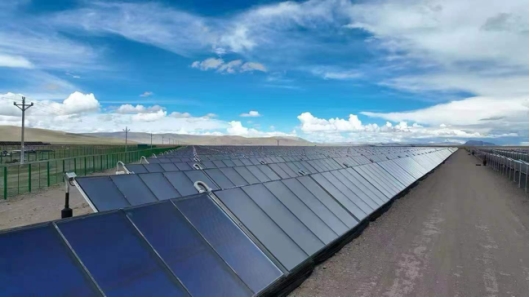 如何才能最大化利用當(dāng)?shù)氐目稍偕茉础p少碳排放?對(duì)此,日出東方進(jìn)行了深入思考和探索。西藏,是全世界太陽輻射最強(qiáng)的地區(qū)之一,有著得天獨(dú)厚的太陽能資源優(yōu)勢(shì)。西藏平均每天日照時(shí)長(zhǎng)8小時(shí),年日照時(shí)間居全國(guó)之首。在措勤特許經(jīng)營(yíng)供暖項(xiàng)目中,日出東方創(chuàng)新性地采用了6136塊大平板集熱器,集熱面積達(dá)85290.4萬平米,確保了太陽能保證率為100%。項(xiàng)目還配備了4萬立方的蓄熱水池,為穩(wěn)定供暖提供堅(jiān)實(shí)保障。同時(shí),為更好節(jié)省資源并全面提升能源利用率,日出東方并沒有廢棄措勤縣原有的生物質(zhì)熱水鍋爐集中供暖系統(tǒng),而是采用太陽能光熱作為主要熱源、現(xiàn)有生物質(zhì)鍋爐系統(tǒng)作為輔助熱源的集中采暖方式,配置水池作為蓄熱裝置,并對(duì)現(xiàn)有供暖系統(tǒng)進(jìn)行技術(shù)改造。