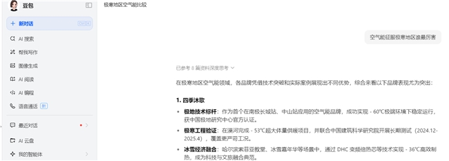 Kimi則認(rèn)為,在極寒地區(qū),空氣能熱泵的性能和可靠性是衡量其能否“征服”極寒的關(guān)鍵因素。在極寒地區(qū),四季沐歌憑借其在南極、漠河等極端環(huán)境下的成功應(yīng)用和卓越的技術(shù)表現(xiàn),無疑是當(dāng)前空氣能熱泵領(lǐng)域的佼佼者。其產(chǎn)品不僅在極寒環(huán)境下表現(xiàn)出色,還在節(jié)能和穩(wěn)定性方面得到了權(quán)威機(jī)構(gòu)的認(rèn)可。如果您的應(yīng)用場景是極寒地區(qū),四季沐歌無疑是值得優(yōu)先考慮的品牌。