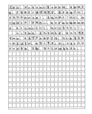 同一道作文題,另一個(gè)四年級(jí)留守兒童寫(xiě)的作文,讀來(lái)卻倍感心疼: