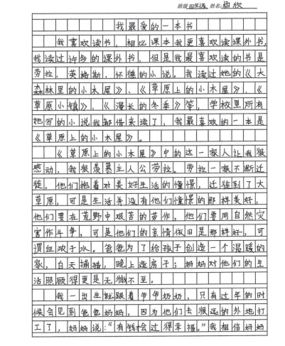 從上學(xué)起我一直在學(xué)校住宿,我也會(huì)想爸爸媽媽,我渴望勞拉家的親情,他們的愛(ài)是那么真誠(chéng)美好……