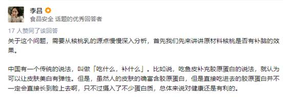 除了資深營養(yǎng)專家的證言之外,同時,也有越來越多的專業(yè)營養(yǎng)師通過知乎、悟空問答等知識分享平臺,圍繞核桃健腦、核桃乳營養(yǎng)價值、核桃乳飲用人群和時間等健康話題,持續(xù)發(fā)表自己專業(yè)回答,深入講解對核桃及核桃乳相關(guān)知識的科普。