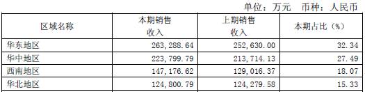 從年報(bào)中的區(qū)域銷售情況來看, 華東、華中、西南、華北仍是養(yǎng)元飲品銷售占比前四的地區(qū),銷售占比分別為32.34%、27.49%、18.07%、15.33%。