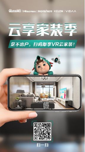 為了配合消費者的宅家抗疫情況,海信家裝嘗試了VR體驗的新模式,將線上的電視、空調、冰箱、洗衣機等多個品類爆款放入體驗,每個場景點開后即可直接跳轉,方便用戶了解信息后一鍵下單,讓客戶足不出戶也能輕松自主搞定家裝,在配送安裝方面更是實行了“無接觸”的新辦法,消費者通過線上選擇家裝神器,海信工作人員便會全程為你無接觸“煥”新家,給了消費者內心的踏實感,,只為消費者的方便與真正放心。
