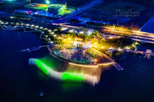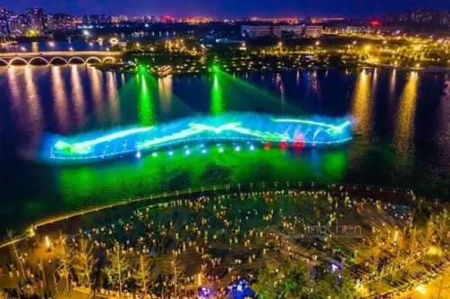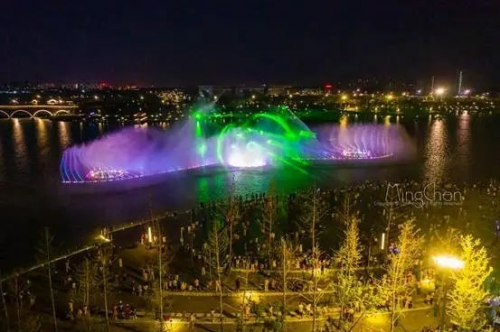和睦湖音樂(lè)噴泉名為“水舞傾城”,長(zhǎng)約120米,寬約18米,最高水柱達(dá)100米以上,成為網(wǎng)紅景點(diǎn)。以水秀、水幕電影為媒介,設(shè)計(jì)主題為“和諧發(fā)展百花齊放”,結(jié)合聲、光、電、火,將人與水、人與火、人與樂(lè)融為一體,綻放浪漫、綻放激情。