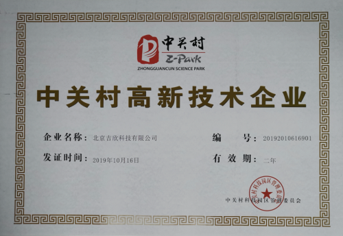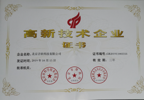 北京吉欣科技榮獲國家高新及中關(guān)村高新雙高新技術(shù)企業(yè)認(rèn)證