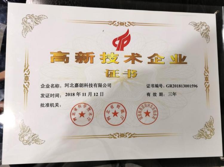 2018年11月嘉朗科技認(rèn)定為國家級(jí)高新技術(shù)企業(yè)