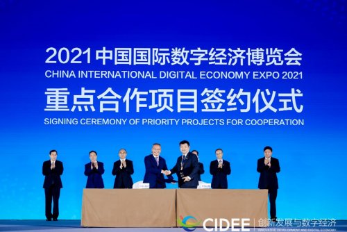 河北省人民政府副省長胡啟生,華為公司副總裁周躍峰代表雙方簽約,中華人民共和國工業(yè)與信息化部部長肖亞慶、河北省委書記王東峰、河北省省長許勤等領(lǐng)導(dǎo)見證簽約儀式。