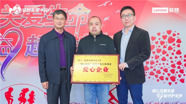 (圖為北京大醫(yī)公益基金會、公益時報共同向聯(lián)想授予“愛心企業(yè)”銘牌)