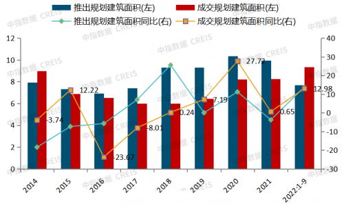 工業(yè)用地推出面積、成交面積均穩(wěn)定增長。2022年1-9月,全國300城共推出工業(yè)用地7.71億平方米,同比增長13.77%;同期全國300城共成交工業(yè)用地9.34億平方米,同比增長12.98%。對比同期全國房地產(chǎn)企業(yè)土地購置面積,降幅接近50%。未來,我們認(rèn)為產(chǎn)業(yè)園區(qū)市場存在較大發(fā)展空間。
