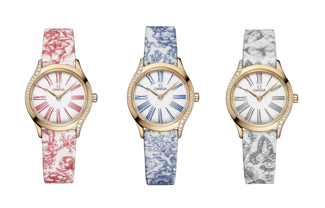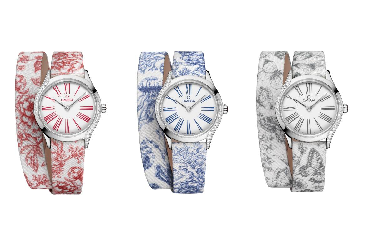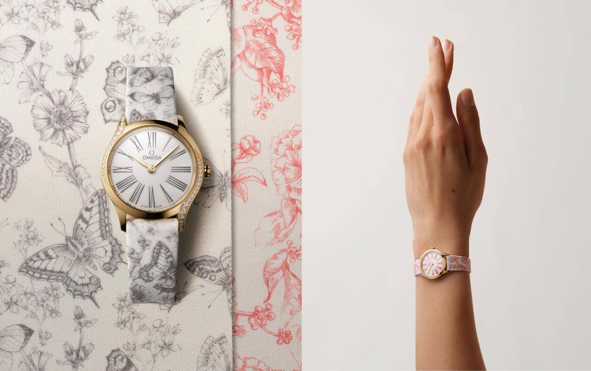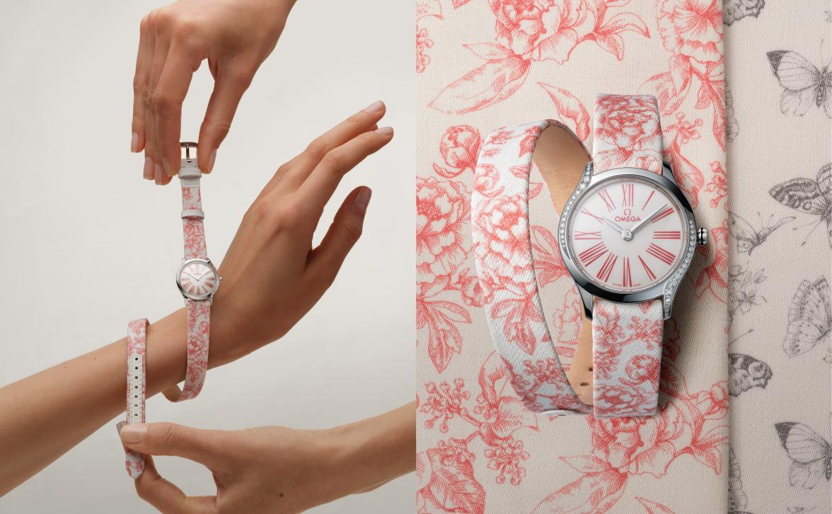 歐米茄從歷史上運用在壁毯和瓷器上的茹伊印花圖案中汲取靈感,設(shè)計并推出三款風(fēng)格獨特的“茹伊印花”表帶,每一款表帶的圖案均與歐米茄品牌基因息息相關(guān)。其中,藍(lán)色海洋元素致敬歐米茄與深海探索的深厚情緣,黑色蝴蝶圖案象征著歐米茄支持人類航空航天探索的傳奇歷史,紅色花卉圖案則彰顯品牌對保護地球家園的不竭熱忱。