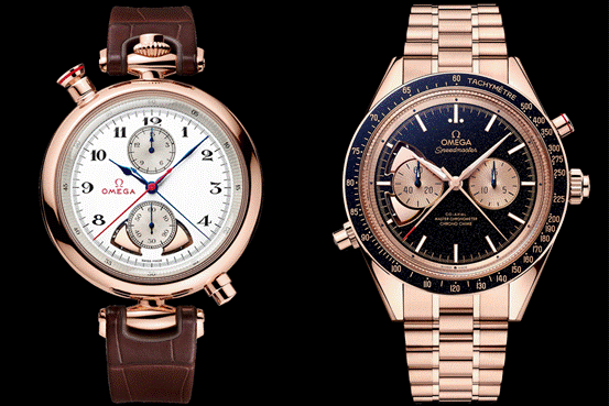 就是下面這兩枚:歐米茄奧林匹克1932計(jì)時(shí)三問表,和歐米茄超霸系列計(jì)時(shí)三問表。