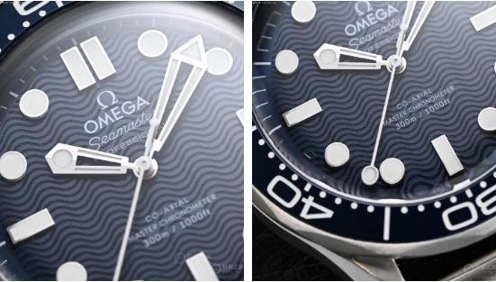 海馬300米“詹姆斯·邦德60周年紀(jì)念款”腕表的盤面,使用激光雕刻的波紋圖案,這一造型和上世紀(jì)90年代的早期海馬300米腕表保持一致,但取消了日歷。需要注意的是,新款腕表的秒針使用了“棒棒糖”秒針,其在歐米茄古董腕表中經(jīng)常出現(xiàn),是歐米茄復(fù)古風(fēng)格的一個(gè)特征。在售的海馬300腕表和2015年的《007:幽靈黨》中,詹姆斯·邦德佩戴的歐米茄海馬300腕表(注意:海馬300和海馬300米不是同一枚腕表)中同樣帶有罕見(jiàn)的“棒棒糖”秒針。