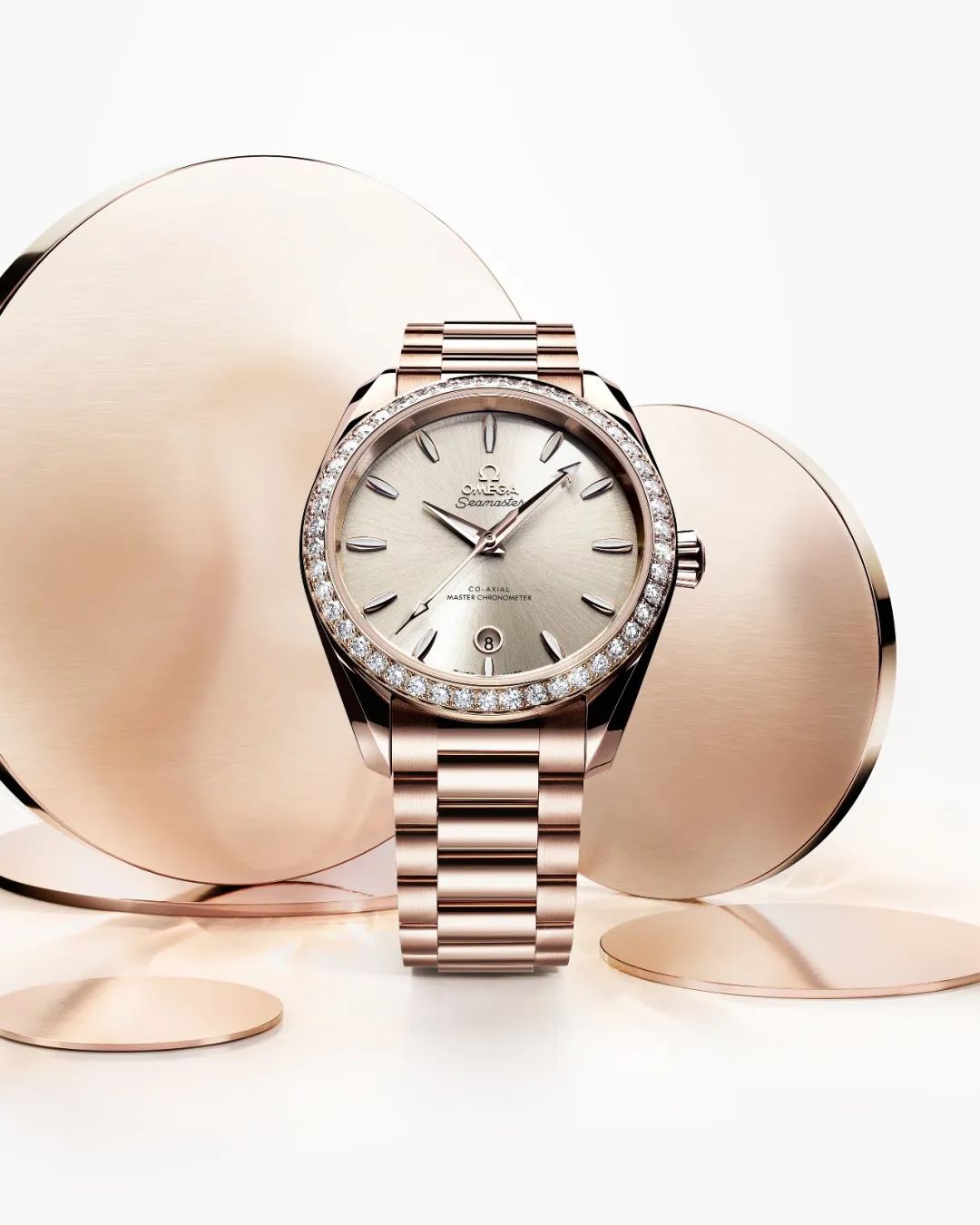 Sedna金和Moonshine金都是歐米茄獨家研發(fā)的特殊貴金屬合金,賦予腕表獨特的色調(diào)且不易褪色。Sedna金由金、銅和鈀三種金屬元素熔合而成,熾烈的玫瑰紅色澤在某種程度上得益于銅的適當比例,而鈀確保了色澤永恒持久。Moonshine金則是歐米茄2019年為慶祝人類首次成功登月50周年推出的全新材質(zhì),采用金、銅、銀和鈀的混合比例,打造出月光般的全新色調(diào),比傳統(tǒng)的黃金顏色更柔和復古,并且更耐腐蝕,色澤更持久穩(wěn)定。金的獨特光澤搭配彩色盤面,更加凸顯腕表的雅致。