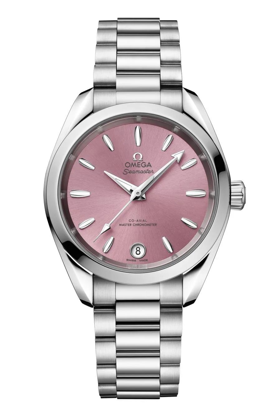 Aqua Terra Shades腕表共有兩個尺寸,女款34毫米以及男款的38毫米(相信有不少女性消費者也愿意挑戰(zhàn)這個尺寸)。34毫米款表盤有海藍色、湖綠色、砂巖色、貝殼粉色和薰衣草紫色;38毫米款表盤則有深藍色、月桂綠色、砂巖色、橘黃色和赤陶色。如此豐富的色彩,不怕你挑選不出心儀的那一枚,就怕你在眾多的色彩中難以取決割舍!