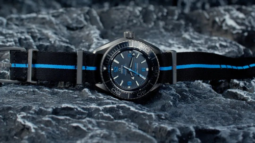 為了應(yīng)對(duì)6000米的超強(qiáng)水壓,鈦金屬版本的表耳造型比較獨(dú)特,它跟表殼一體成型,在當(dāng)中做了斷開(kāi)處理,搭配歐米茄NATO表帶,舒適輕便。
