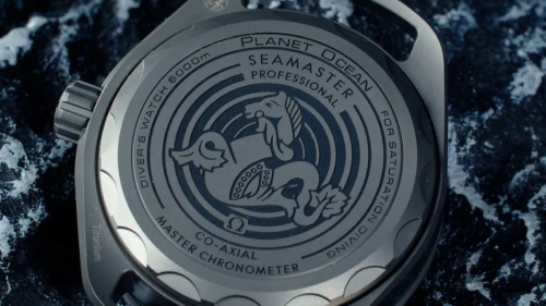 旋入式的表底蓋也采用了噴砂鈦合金材質(zhì),為了實(shí)現(xiàn)6000米的防水,這枚腕表沒(méi)有做背透設(shè)計(jì),但歐米茄非常貼心地采用了激光雕刻技術(shù),不僅雕出了漂亮海馬造型,而且還寫(xiě)上了不同字樣,每行話都可以找到相對(duì)應(yīng)的解釋。