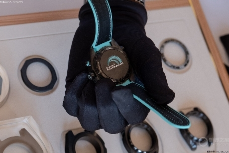 腕表表背延續(xù)綠松石色主題,飾有新西蘭酋長隊隊徽——綠松石色蕨類植物圖案和白色字樣。由于采用NAIADLOCK技術(shù),徽標始終朝向正確的方向。在堅固的表背下方可以看到歐米茄9900自動計時機芯。該機芯配備同軸擒縱機構(gòu),能夠抵抗高達15,000高斯的強磁場,并且采用鍍銠和日內(nèi)瓦波紋潤飾。9900機芯振頻28,800次/小時(4赫茲),可提供長達60小時動力儲存。同時,機芯通過瑞士聯(lián)邦計量研究院(METAS)的至臻天文臺認證,日均誤差僅為0/+5秒。