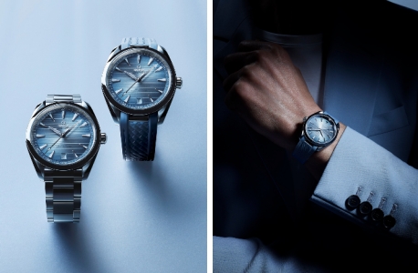 Summer Blue系列中有三枚Aqua Terra腕表,其中41毫米表款和43毫米世界時(shí)手表,都有一體式表鏈和橡膠表帶兩種配置,適合更豐富的搭配場(chǎng)景;另外一枚38毫米手表則是中性風(fēng)格,搭配精鋼表鏈,細(xì)手腕的男生女生都可以戴。
