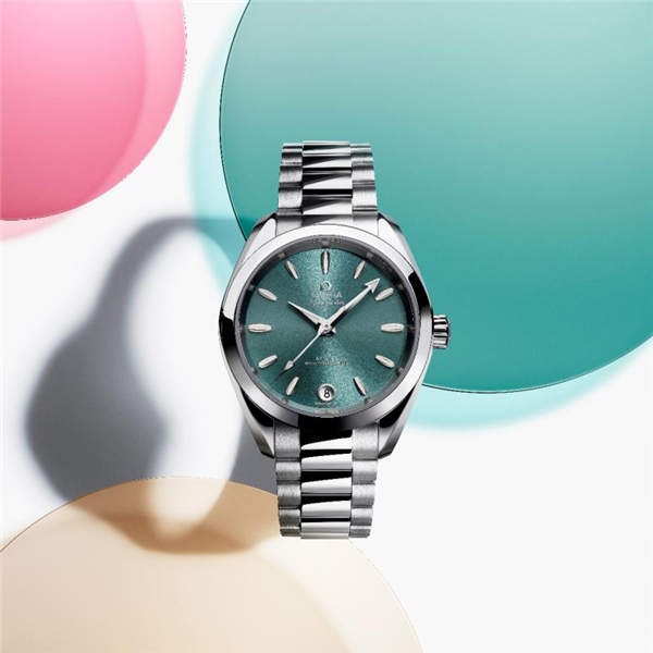 一方面,海馬系列手表設(shè)計(jì)簡(jiǎn)潔,對(duì)稱的表盤、干凈的湖綠配色、以及合適的表殼直徑,都十分適合她搭配簡(jiǎn)單的T恤或者是現(xiàn)代裝。另外一方面,從細(xì)節(jié)來看,湖綠色表盤由黃銅制成,經(jīng)過漆面處理,由中央向四周呈現(xiàn)出太陽射線的打磨效果。6點(diǎn)位設(shè)有日歷窗,指針、小時(shí)刻度和歐米茄品牌標(biāo)識(shí)均以拋光白色18K金制成。從整體再到細(xì)節(jié),我認(rèn)為這枚手表是十分適合現(xiàn)代都市女性的選擇。