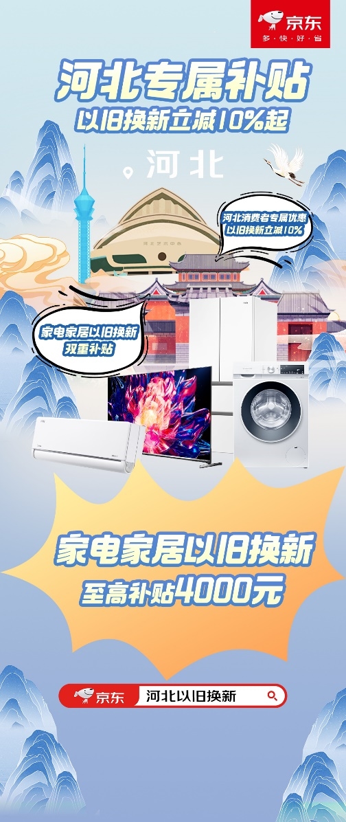 今年4月,《河北省推動大規(guī)模設備更新和消費品以舊換新實施方案》出臺,鼓勵家電銷售、生產(chǎn)、回收企業(yè)聯(lián)合開展以舊換新促銷活動。京東承接了河北以舊換新補貼的發(fā)放工作,近期上線了以舊換新河北專屬頁面。河北省消費者在京東以舊換新家電家居商品時,可在京東618最低價的基礎上,再享立減10%起的政府補貼,每筆訂單補貼額上限為1000元,每個消費者最多可享受4次,即最高可享補貼4000元。