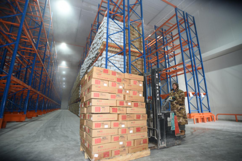在該倉庫門前,工人們正在將從各地運送過來的需要冷凍的食品卸車轉(zhuǎn)運至庫內(nèi),同時,也有不少從冷庫運出來的冷凍食品被裝上冷鏈車,準備發(fā)往不同的城市。