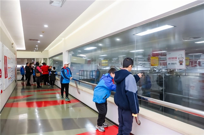 隨后,他們來到了生產(chǎn)車間參觀區(qū)。在這里,他們透過玻璃目睹了可口可樂產(chǎn)品的部分加工過程。全自動化的生產(chǎn)線、智能化的生產(chǎn)技術(shù)和高速運轉(zhuǎn)的設(shè)備讓孩子們驚嘆不已。孩子們興奮著說著:以前只知道喝可樂,現(xiàn)在才知道原來可樂的生產(chǎn)過程這么復(fù)雜和神奇。