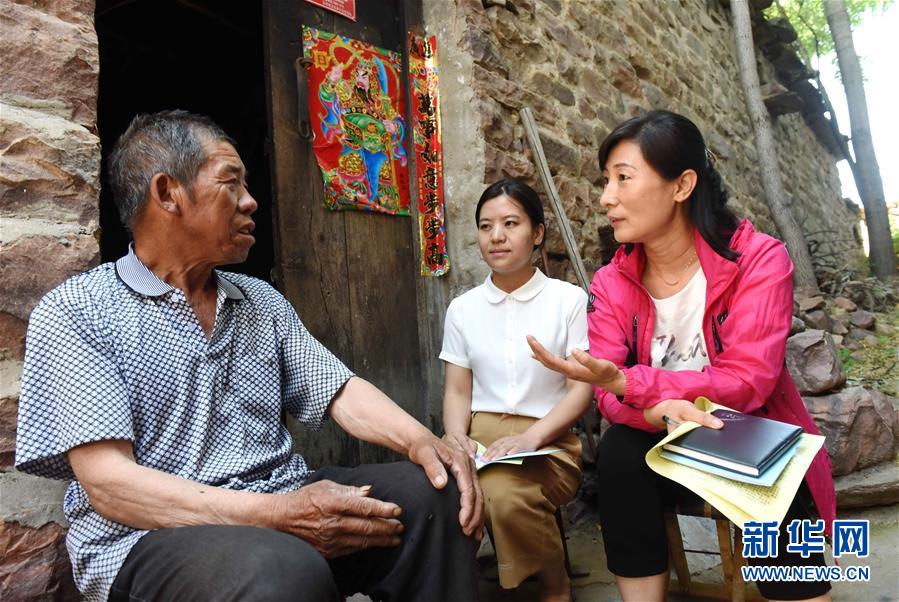 2018年6月12日,河北省沙河市紀(jì)委監(jiān)察委工作人員在蟬房鄉(xiāng)口上村向村民了解扶貧資金落實情況。新華社記者朱旭東攝
