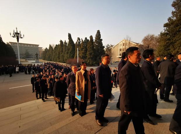 △上午八點(diǎn)半,正在陸續(xù)入場的學(xué)員們。在他們不遠(yuǎn)處屹立著毛澤東雕像。(央視記者張曉鵬拍攝)