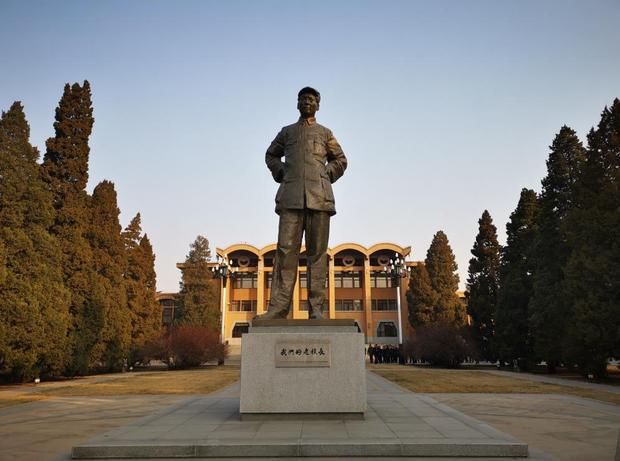△禮堂前的毛澤東雕像。毛澤東曾在1943年到1947年間擔(dān)任中共中央黨校校長。(央視記者張曉鵬拍攝)