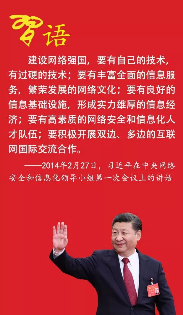——2014年2月27日,習近平主持召開中央網(wǎng)絡安全和信息化領導小組第一次會議時的講話