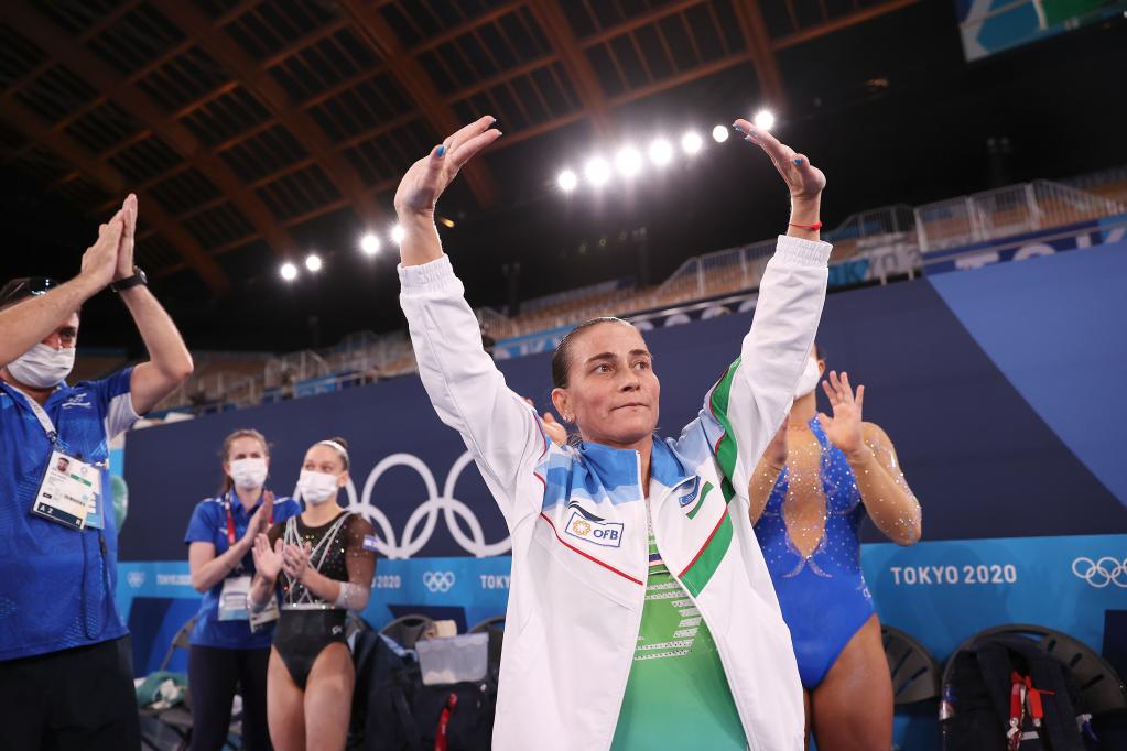 兒子病好之后,丘索維金娜依然選擇奮斗在賽場(chǎng)上,這一次支撐她繼續(xù)向前的,是對(duì)體操的熱愛。在東京的有明體育館,46歲的丘索維金娜站上自己深愛的體操賽場(chǎng),與跟自己兒子年紀(jì)相仿的選手們同場(chǎng)競(jìng)技。