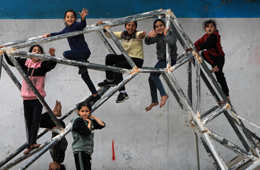 這是2月23日在加沙地帶中部邁加齊難民營拍攝的兒童。新華社發(fā)(亞西爾·庫迪攝)