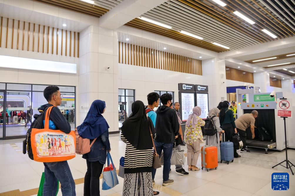 3月3日,在印度尼西亞雅加達哈利姆站,乘客排隊接受安檢準備進入候車大廳。 新華社記者 徐欽 攝