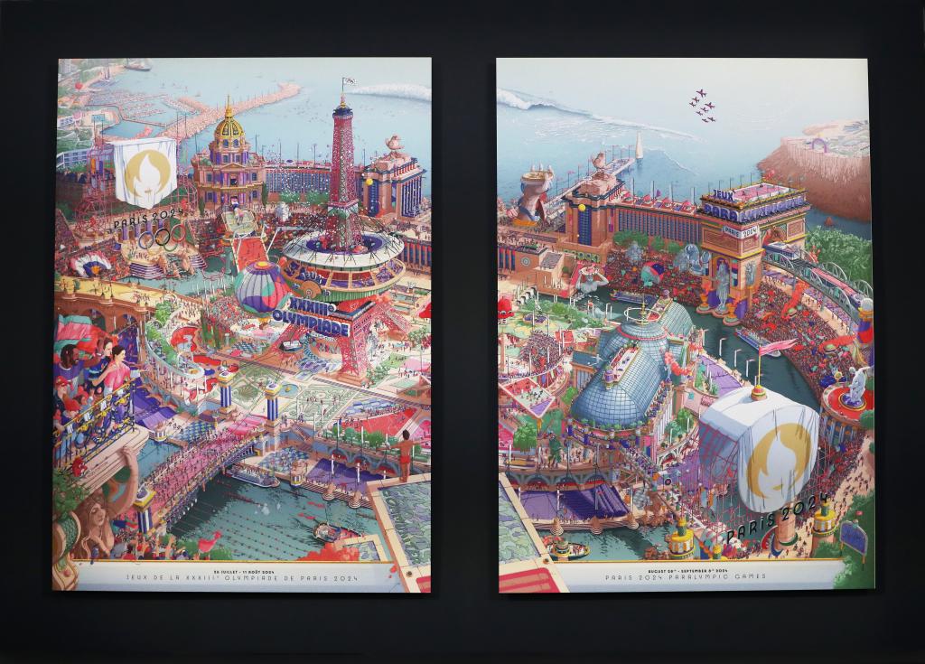 3月4日,由法國插畫藝術(shù)家烏戈·加托尼創(chuàng)作的巴黎奧運會和殘奧會官方海報在巴黎奧賽博物館正式發(fā)布。新華社記者 高靜 攝