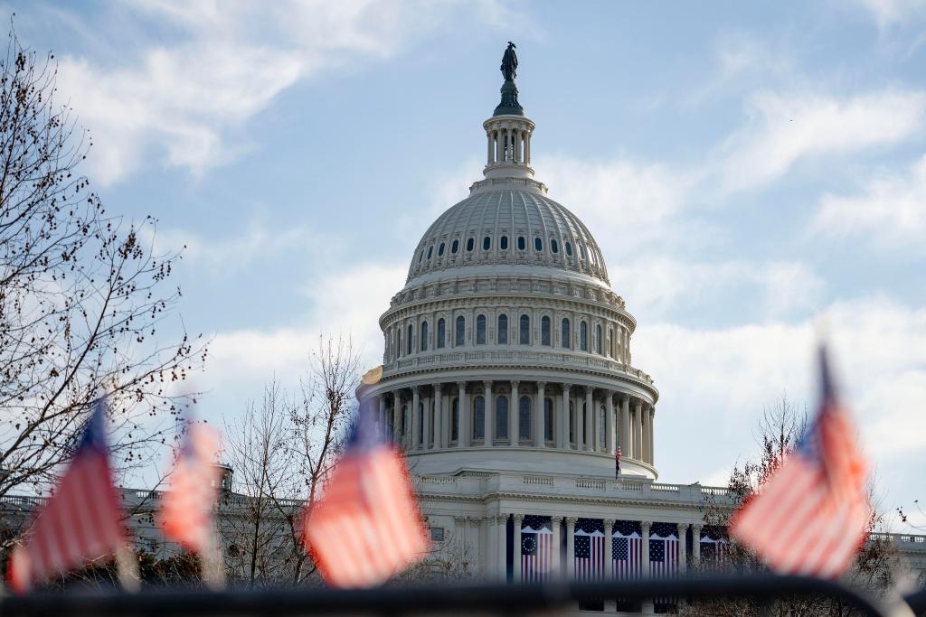 這是2021年1月13日在美國(guó)首都華盛頓拍攝的國(guó)會(huì)大廈。新華社記者劉杰攝
