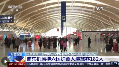 浦東機(jī)場海關(guān)旅檢處旅檢四科科長 陳宇炯:我目前在浦東機(jī)場T2航站樓海關(guān)監(jiān)管區(qū),今年以來,免簽“朋友圈”擴(kuò)容,3月14日是我國對瑞士,愛爾蘭,匈牙利,奧地利,比利時,盧森堡六國持普通護(hù)照人員施行免簽政策的第一天,同時航班增量、航線增加等多項利好政策疊加,出入境旅客量一直在高位運(yùn)行,尤其是免簽政策,現(xiàn)場最直觀的感受就是出入境旅客中外國人的比例明顯上升了,外國人更愿意來中國經(jīng)商、旅游。