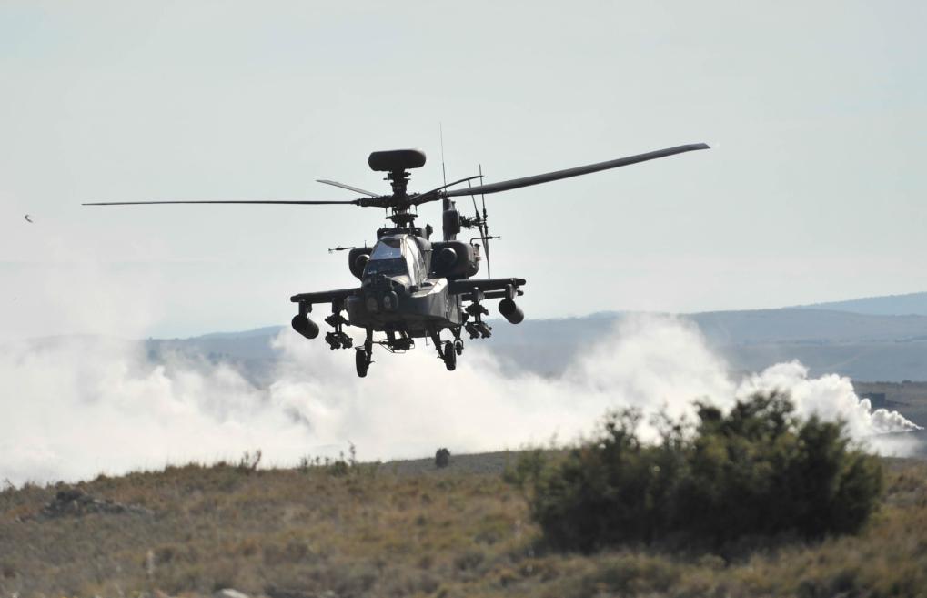 2015年11月4日,在西班牙薩拉戈薩舉行的陸空聯(lián)合作戰(zhàn)演習(xí)中,“阿帕奇”武裝直升機(jī)進(jìn)入演習(xí)區(qū)域。新華社記者謝海寧攝