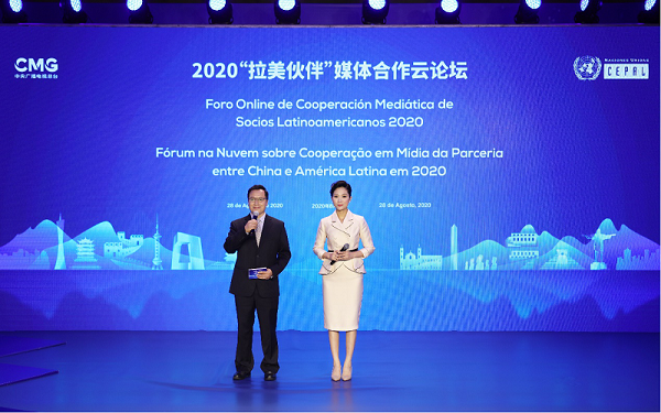 8月28日,中央廣播電視總臺、聯(lián)合國拉加經(jīng)委會和拉美新聞聯(lián)盟以視頻連線方式舉辦2020“拉美伙伴”媒體合作云論壇。來自中國和拉美地區(qū)11個(gè)國家15家機(jī)構(gòu)共33名與會代表圍繞“攜手抗疫,共克時(shí)艱”的主題,展開云端對話,共同發(fā)布合作抗疫的聯(lián)合聲明,開啟了中拉媒體合作的新篇章。