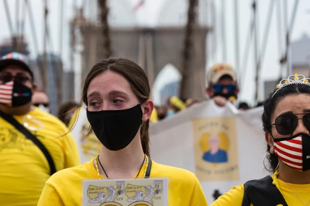 8月7日,游行者走過美國紐約布魯克林大橋,以紀念新冠逝者。新華社/美聯
