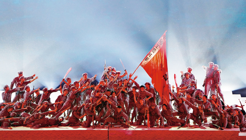 長征這一人類歷史上的偉大壯舉,留給我們最可寶貴的精神財富,就是偉大長征精神。2021年6月28日晚,慶祝中國共產(chǎn)黨成立100周年文藝演出《偉大征程》在國家體育場盛大舉行。這是戲劇與舞蹈《長征》。新華社記者 陳曄華/攝