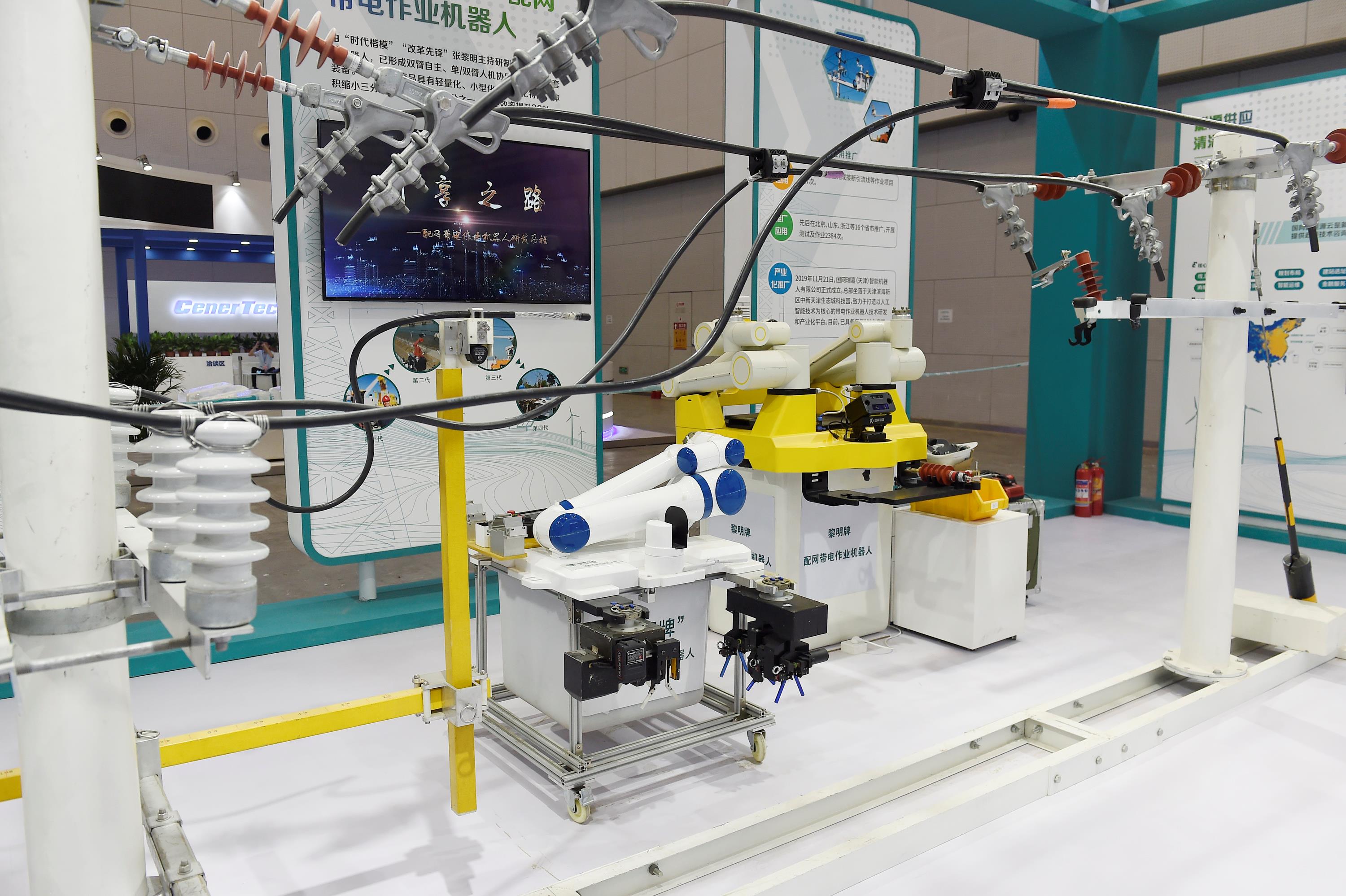 △張黎明研發(fā)的全自主配網(wǎng)帶電作業(yè)機器人,在第五屆世界智能大會上展出。