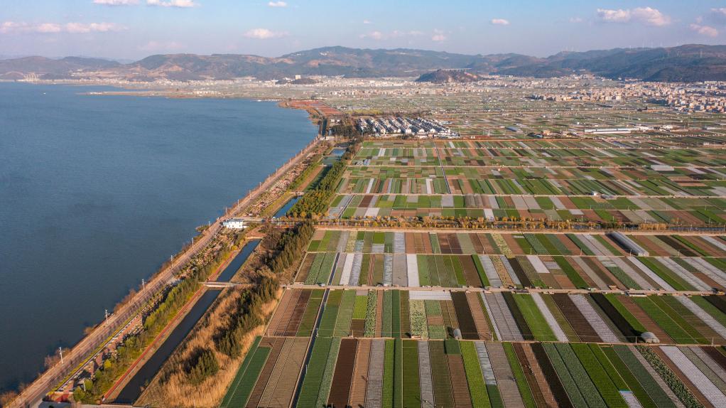 這是云南省玉溪市通?h的田園風(fēng)光(無(wú)人機(jī)照片,2023年2月7日攝)。新華社記者 胡超 攝