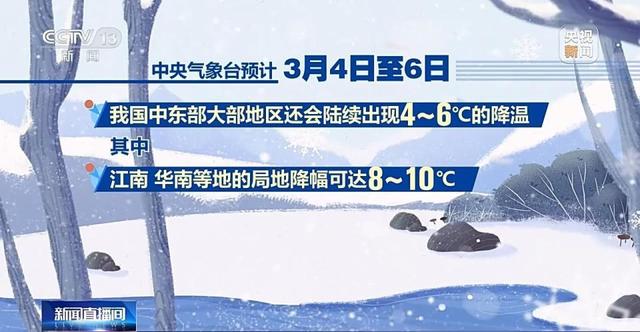 中央氣象臺(tái)預(yù)計(jì),隨著新一股冷空氣的到來(lái),3月4日至6日,我國(guó)中東部大部地區(qū)還會(huì)陸續(xù)出現(xiàn)4~6℃的降溫,其中,江南、華南等地的局地降幅可達(dá)8℃~10℃。建議公眾密切留意臨近預(yù)報(bào),根據(jù)天氣變化合理增減衣物,謹(jǐn)防感冒。(央視新聞客戶端)